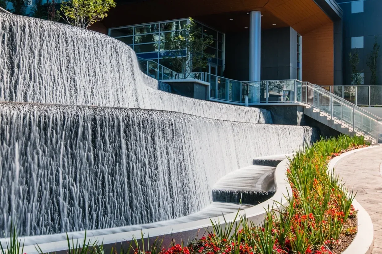 In water feature design, this translates to layered flows, calibrated sound levels, and systems designed for people and place.